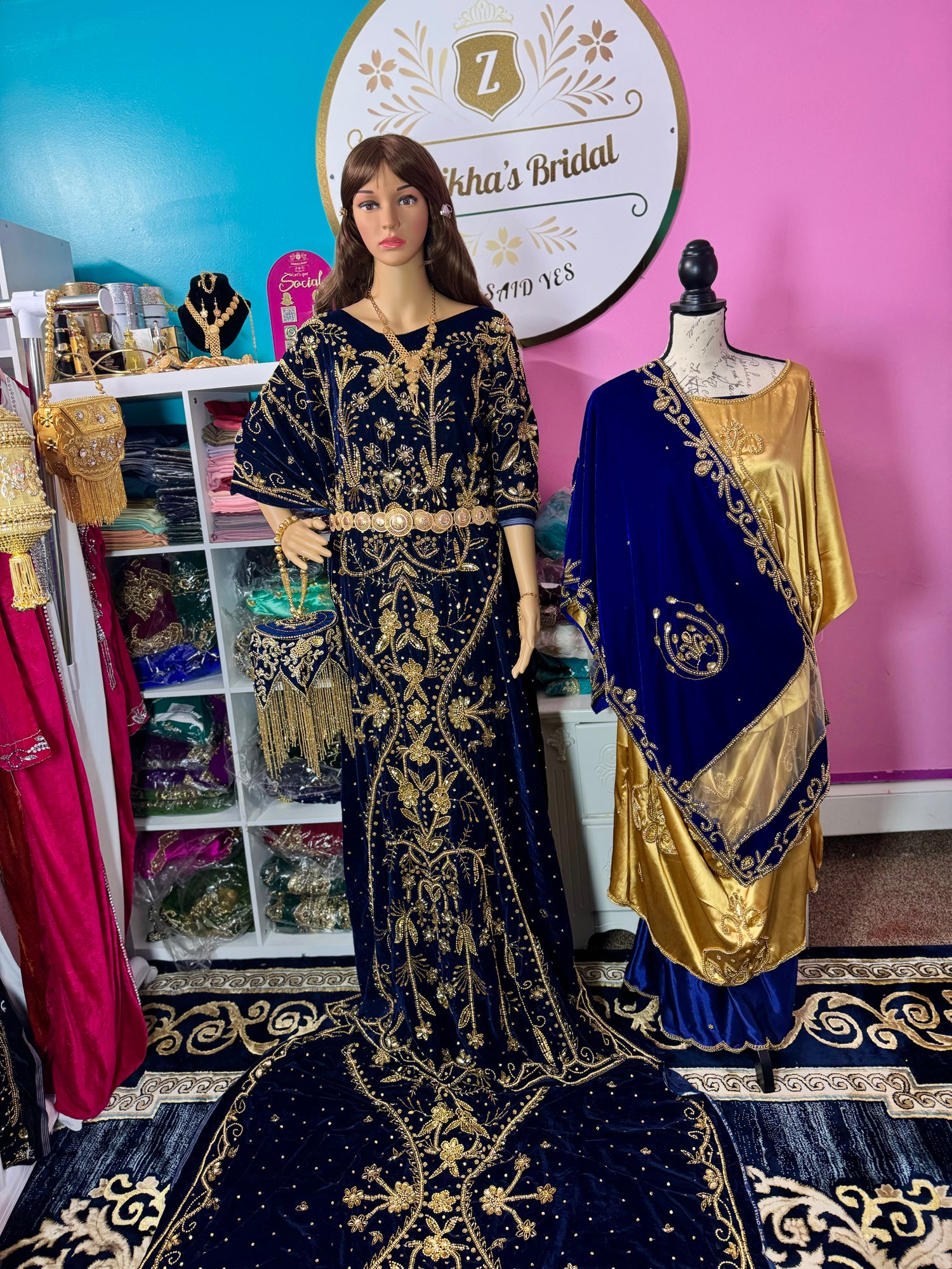Elevate your special occasion style with this handmade kaftan dress, meticulously crafted for elegance and comfort. Adorned with intricate beadwork and sparkling crystals, this kaftan exudes luxury and sophistication, making it perfect for weddings, Eid celebrations, and festive parties.